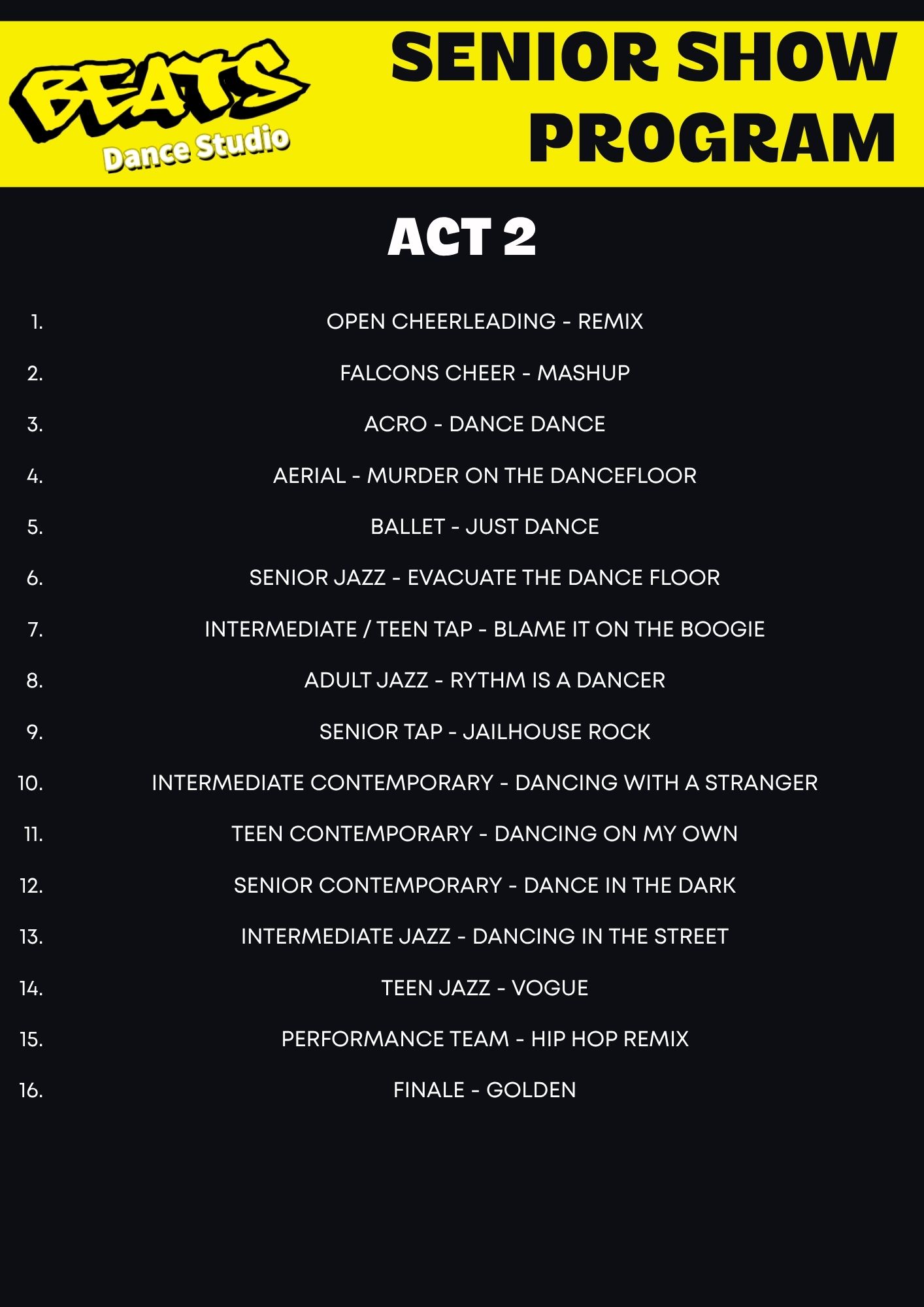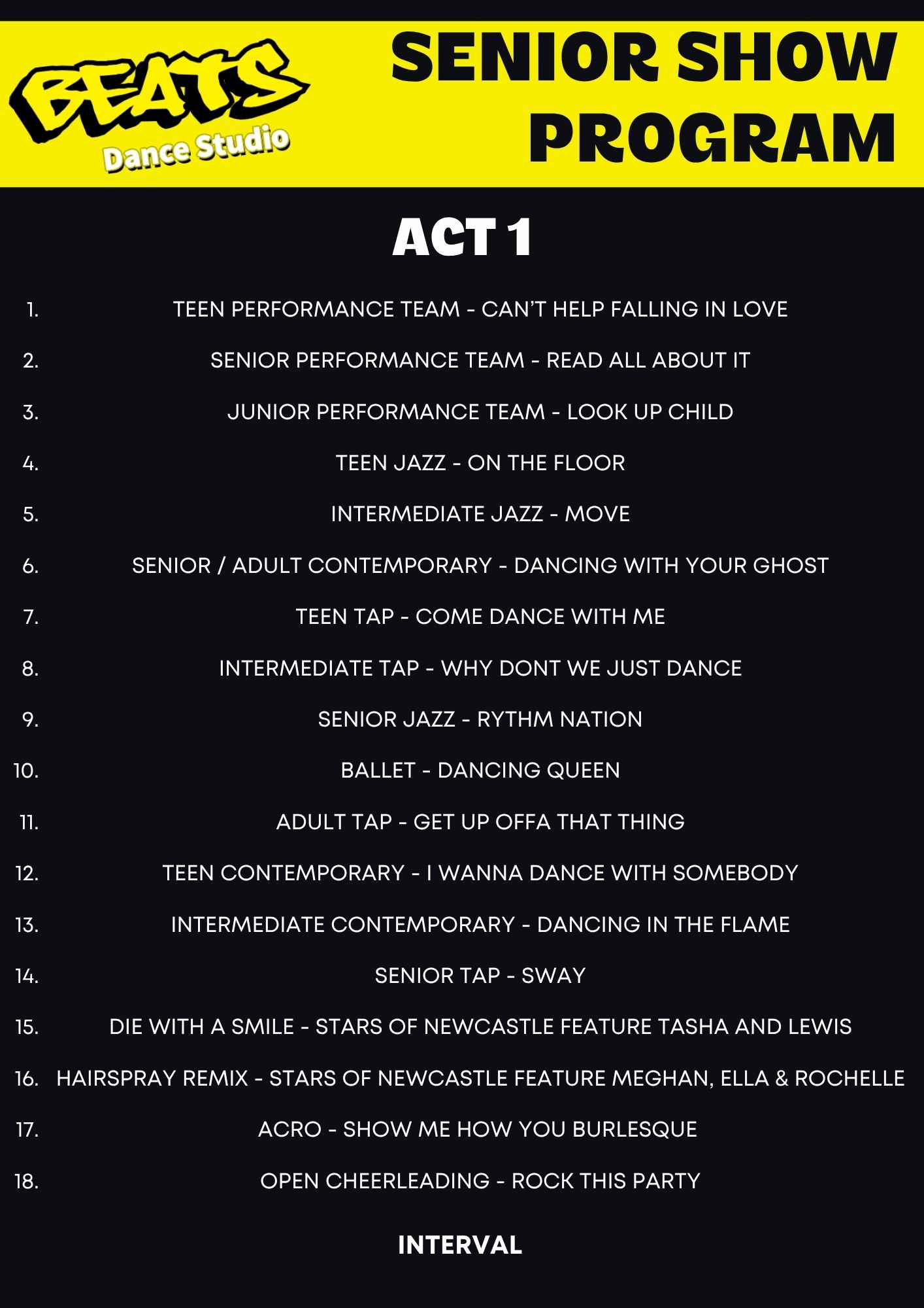 Please find below the program for our Senior Show commencing at 6pm on 22nd November 2025.